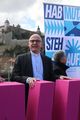 ZdK-Generalsekretär Marc Frings lenkte das Augenmerk auf die Farbgestaltung der Werbelinie. „Wer mit dem Leitwort ‚Hab Mut, steh auf!‘ in einen Katholikentag geht, braucht einfach Farbe“, sagte er. „Sie bringt Leben ins Spiel, gibt ein Gefühl für Inhalte. Sie setzt den Ton, mit dem ein Ereignis verbunden wird. Wir wollen, dass die Farben des Katholikentags für Vielfalt, Offenheit und Gemeinschaft stehen.“ Ein dunkles Blau grundiere das Konzept, werde mit Weiß kombiniert. „Das bringt unsere drei aktiven Farben richtig zum Leuchten: Gelb. Magenta. Hellblau.“ Der Katholikentag unterstreiche damit, dass es an der Zeit sei, sich selbstbewusst aufzumachen, um das Engagement der Vielen für einen gerechten Frieden in der Welt in eine Bewegung zu übersetzen. „Es ist an der Zeit, die Menschenwürde zu verteidigen. Es ist an der Zeit, gegen Hass und Hetze aufzustehen, die das Klima in unserem Land zu vergiften drohen. Katholikentage sind von jeher Orte, an denen Bewegungen entstehen oder vorhandene Bewegungen ein hörbares Echo finden. So soll es auch in Würzburg sein.“