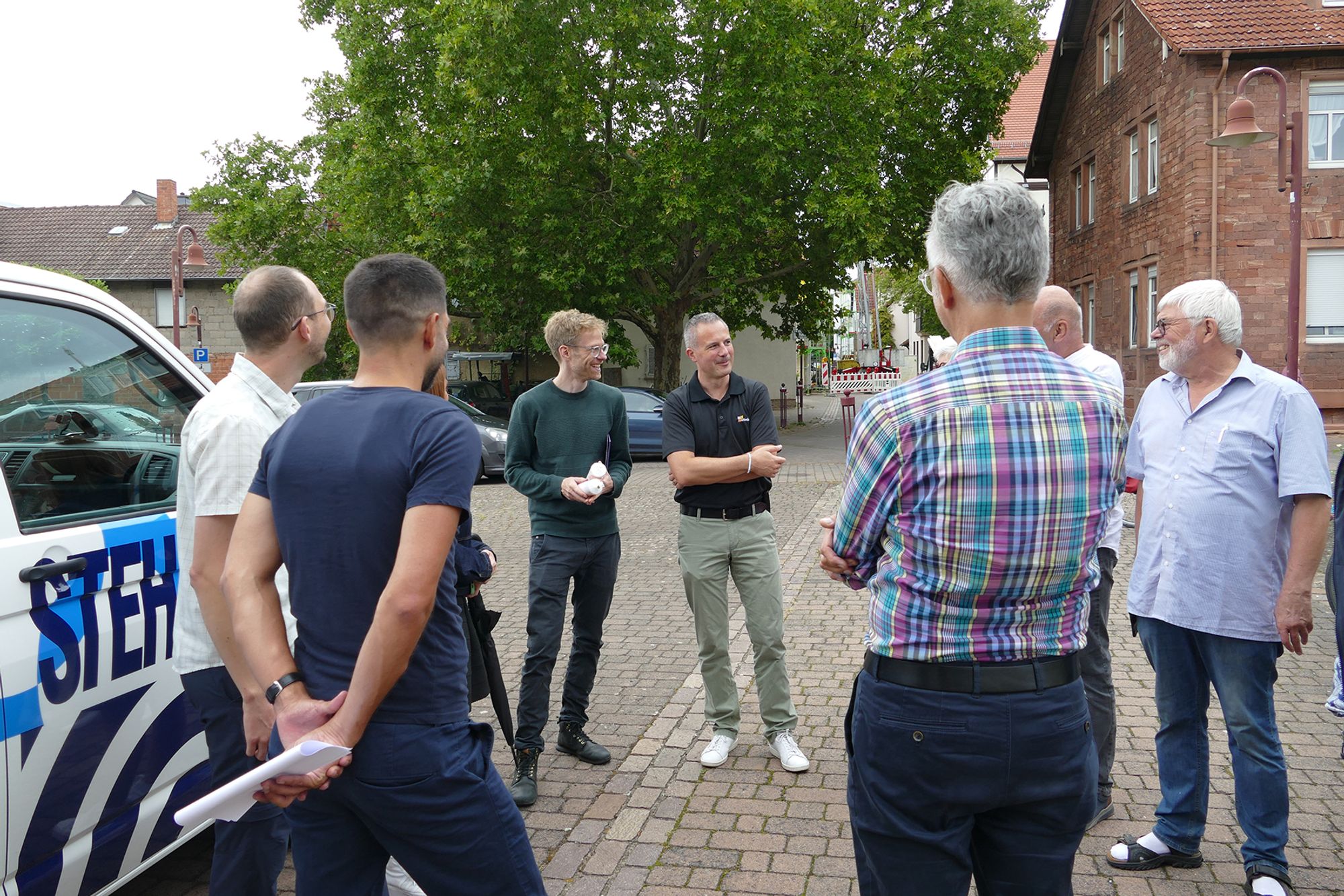 Von Aschaffenburg brach die Gruppe in Richtung Miltenberg auf. Gut 20 Kilometer weiter gab es den nächsten Halt in Erlenbach am Main. Dort traf sie unter anderem auf Kirchenpfleger Rudi Großmann, Christoph Becker, Bürgermeister der knapp 10.000 Einwohner zählenden Gemeinde, sowie Pfarrgemeinderatsvorsitzende Maria Hahn. Auch hier gab es Gespräche rund um die aktuellen Themen von Kirche und Kommune. Becker erklärte, dass in der kleinen Stadt Menschen aus 90 Nationen zuhause sind. „Wir brauchen Menschen, die dabei helfen, Brücken zueinander zu schlagen“, sagte Becker. Für ihn spiele dabei die Kirche eine wichtige Rolle.